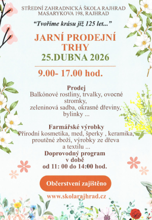 se konají 25. dubna od 9.00 do 17.00 hodin. Zve Střední zahradnická škola, Masarykova 198, Rajhrad.